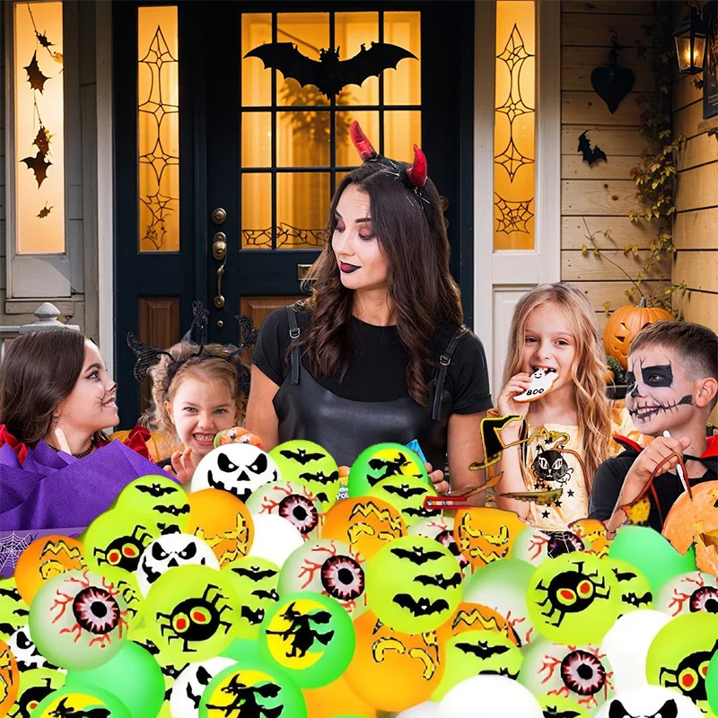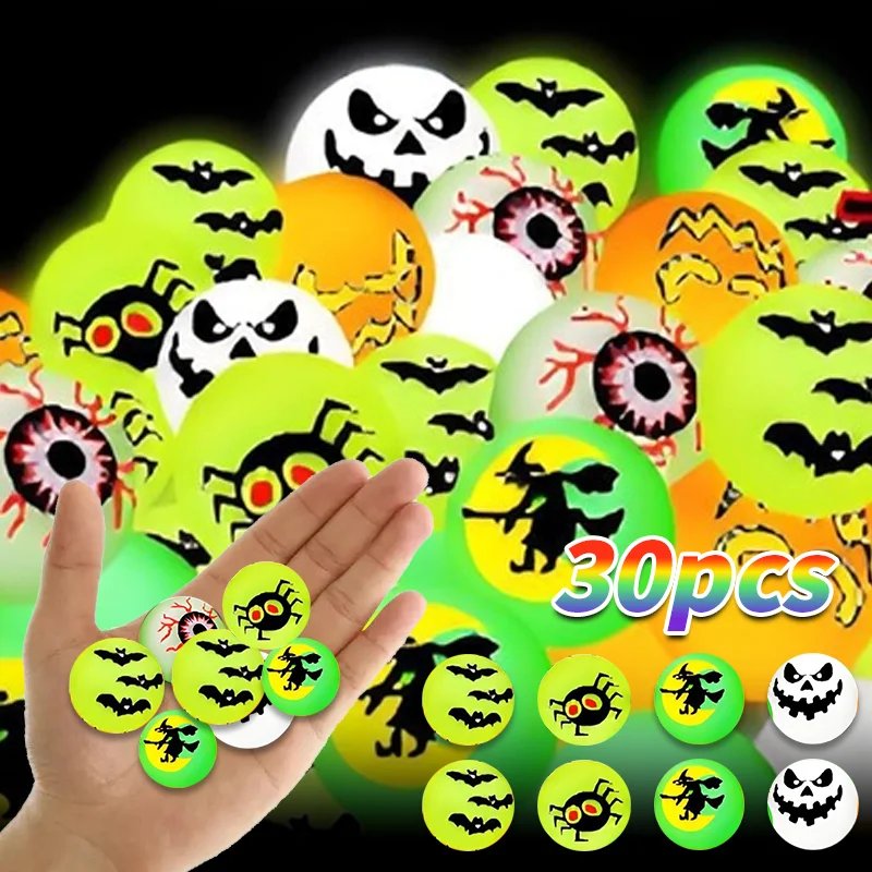 10/20/30Pcs Luminous Halloween Bouncing Balls Glow in The Dark Eyeball Scary Rubber Balls Toy for Halloween Party Favors Supply