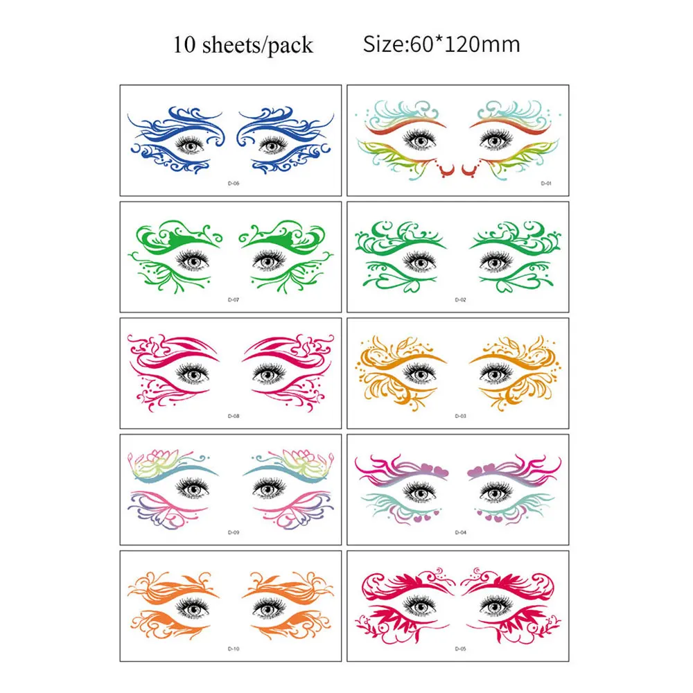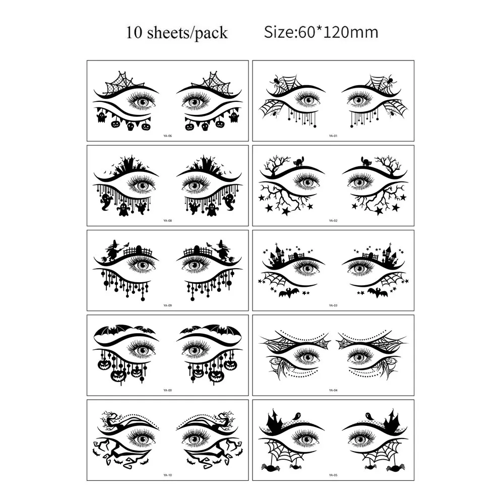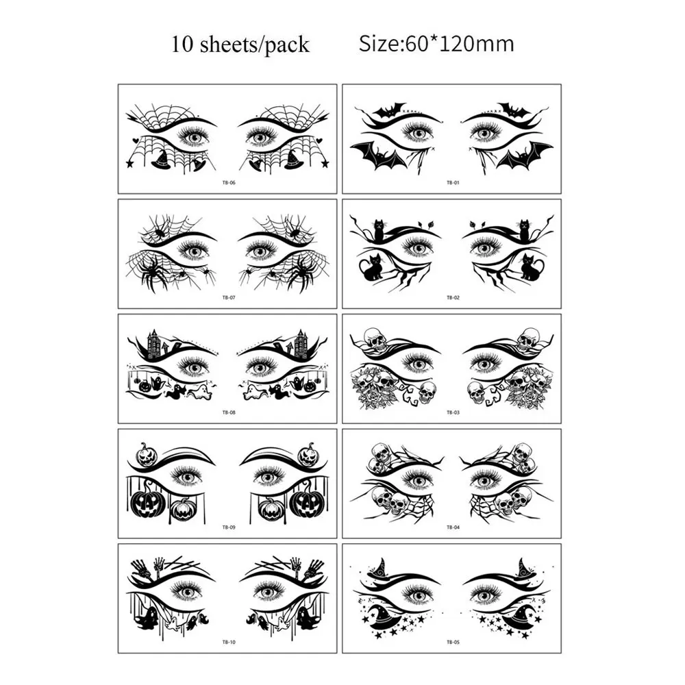 10pcs Halloween Facial Makeup Temporary Tattoo Stickers Waterproof Eye Decoration Tattoo