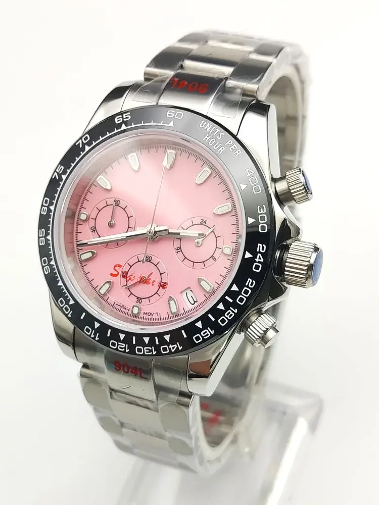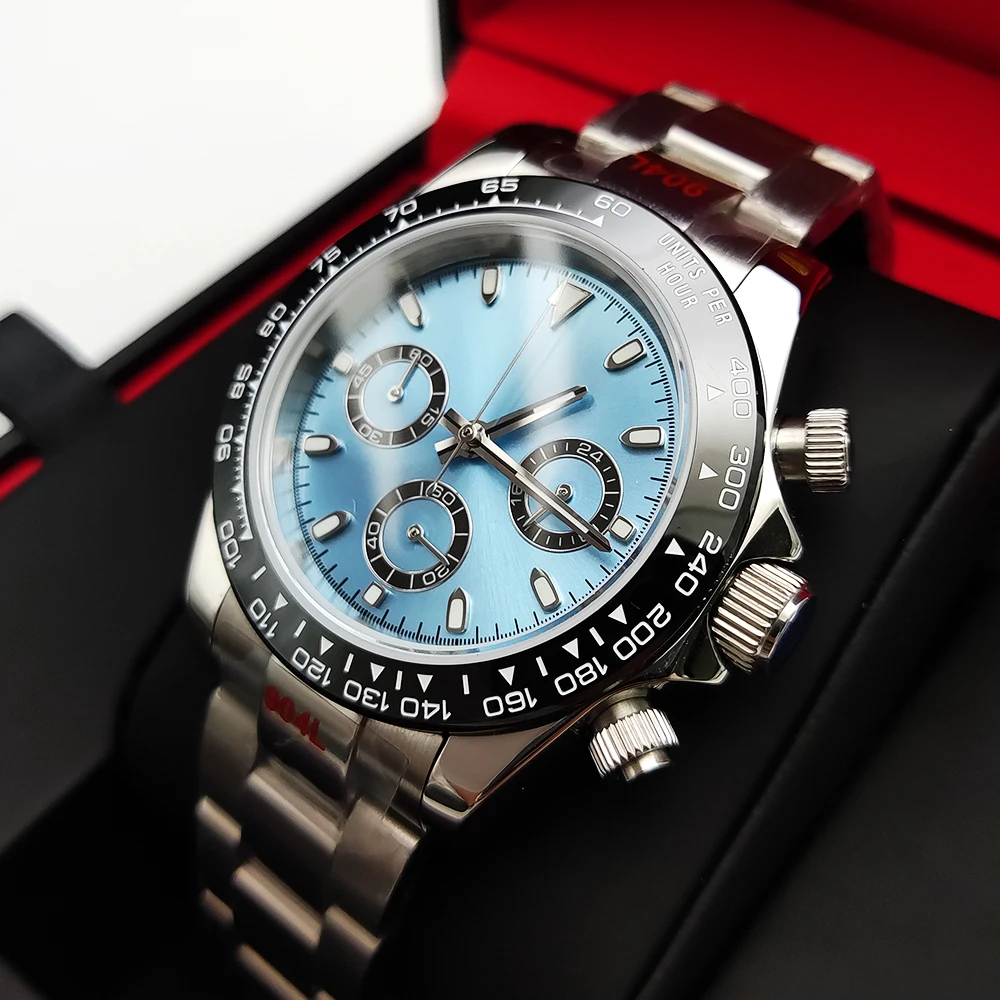 20 color Business 39mm Quartz Watch Men's Timing Sapphire Crystal VK63 Movement Calendar Luminous Blue Dial Stainless Steel Stra