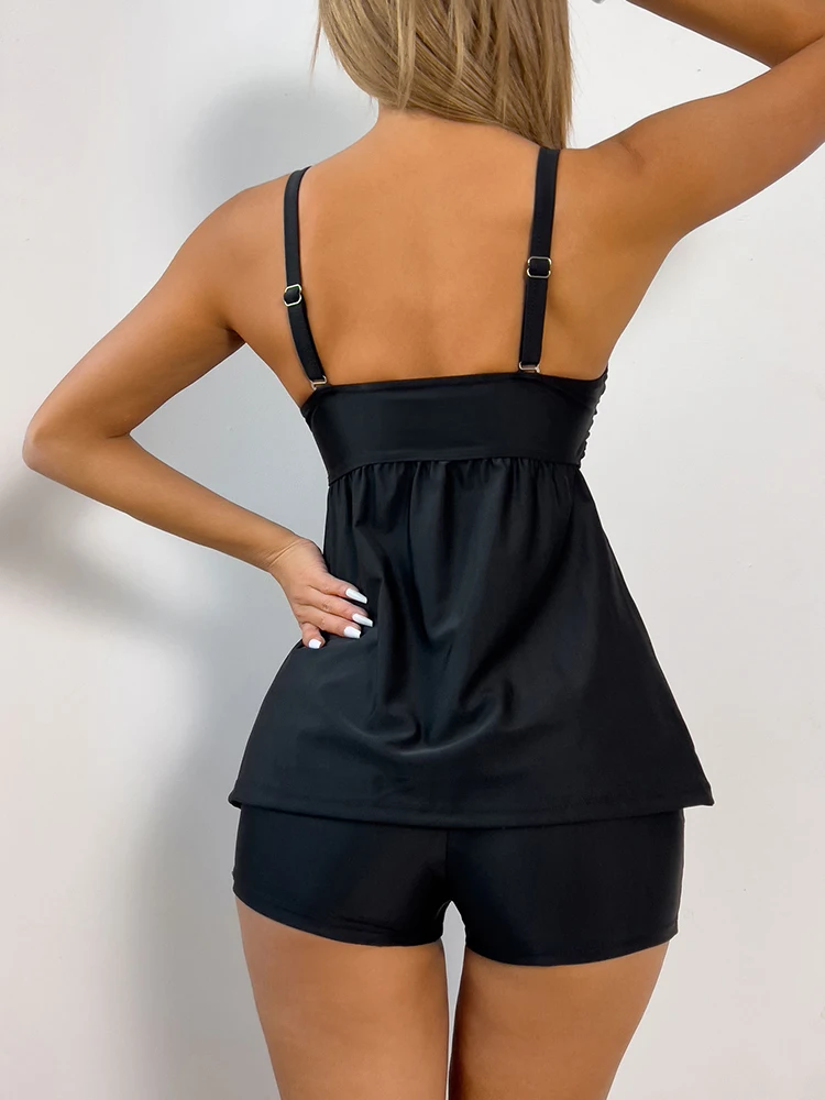2024 High Quality Design Sexy Women's Bikini Set Black Swimwear Pool Swimsuit Retro Fresh Leaf Print Strap Swimsuit