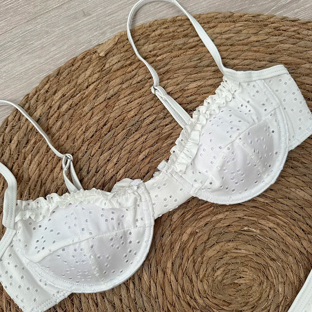 2024 Sexy Bikinis Floral Swimsuit Women Swimwear Push Up Beachwear Solid Bathing Suit Brazilian Bikini Set biquini Female