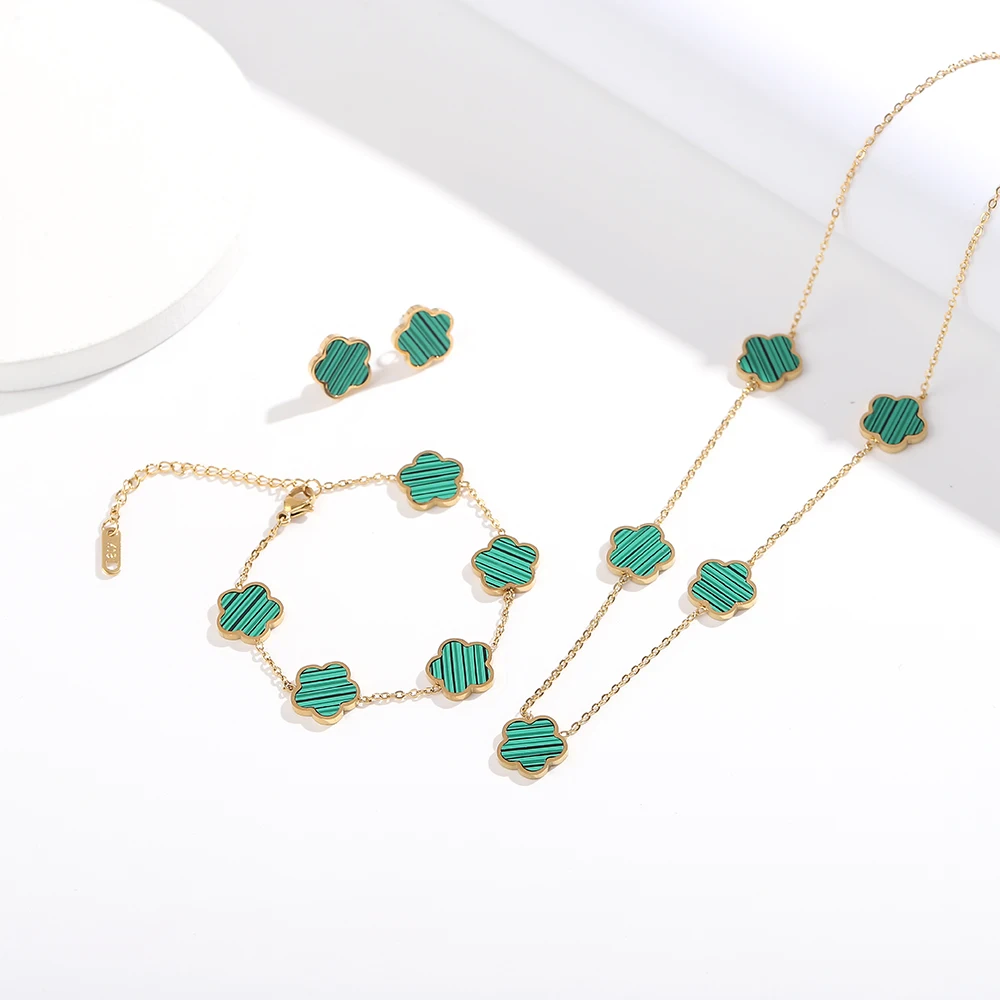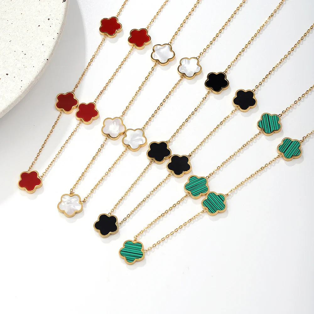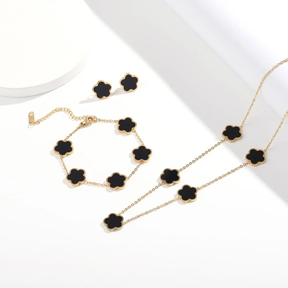 ALTERA 2023 High Quality Stainless Steel Luxury Five Leaf Flower Pendant Jewelry Set/3pcs for Women Clover Bracelet Jewelry Gift
