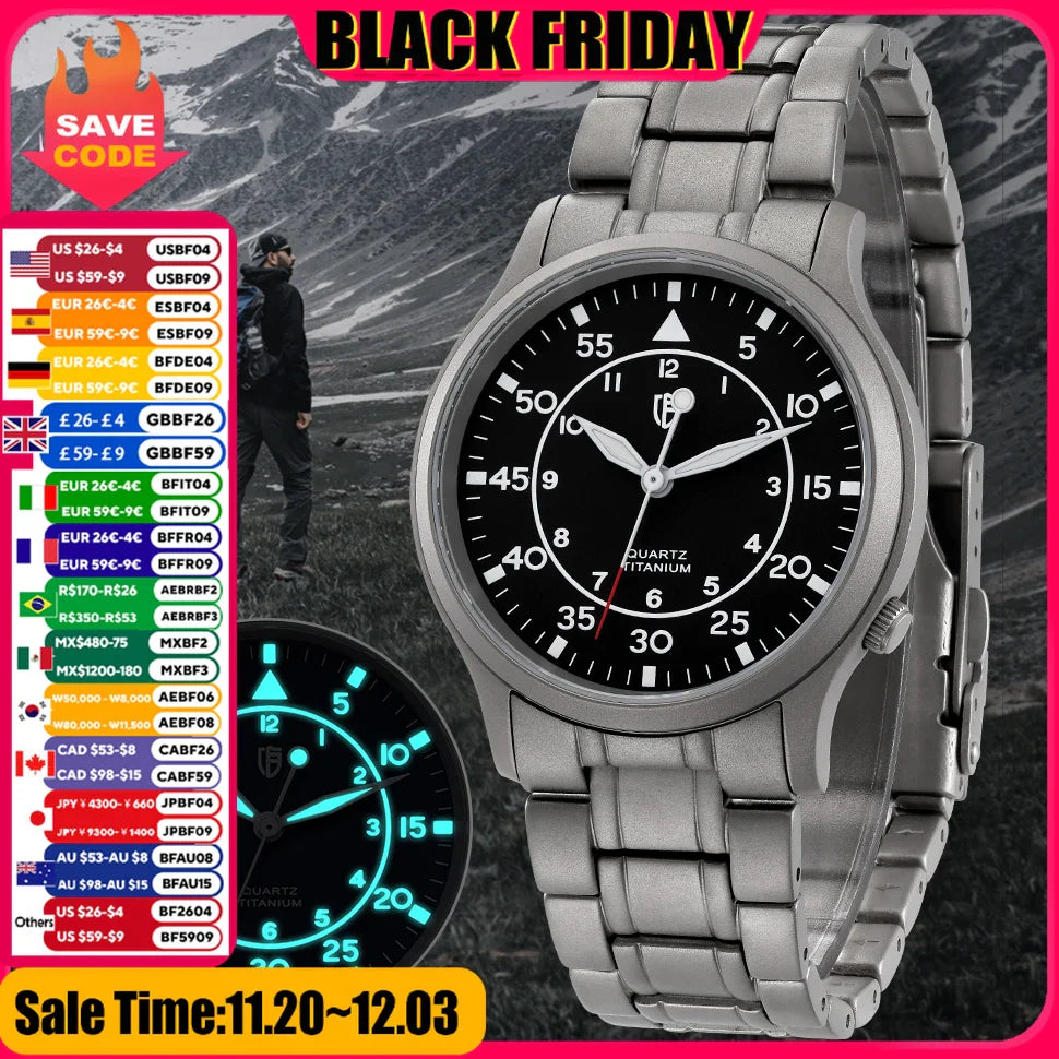 BERNY Titanium Watch for Men AR Coating Sapphire Fashion Wristwatch Luminous VH31 Ultra-thin Quartz Watch Waterproof 5ATM Watch