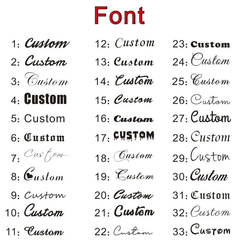 3.,There are 10 fonts to choose from, please choose the font you like. If you don't select any font, we will give you the default font 2. 4.Material is Stainless steel ,925silver color,18K gold/rose gold plated.
