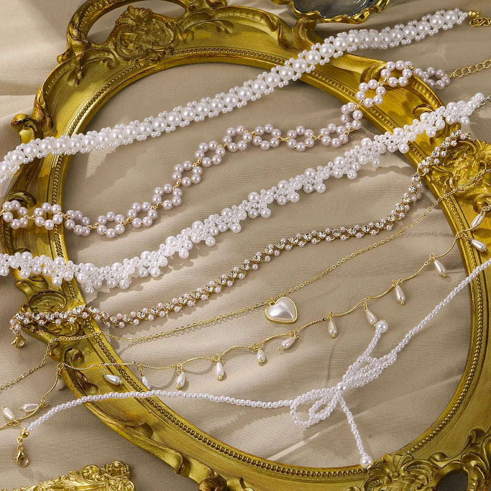 FNIO Pearl Chain Choker Necklace For Women Collar Goth Necklaces