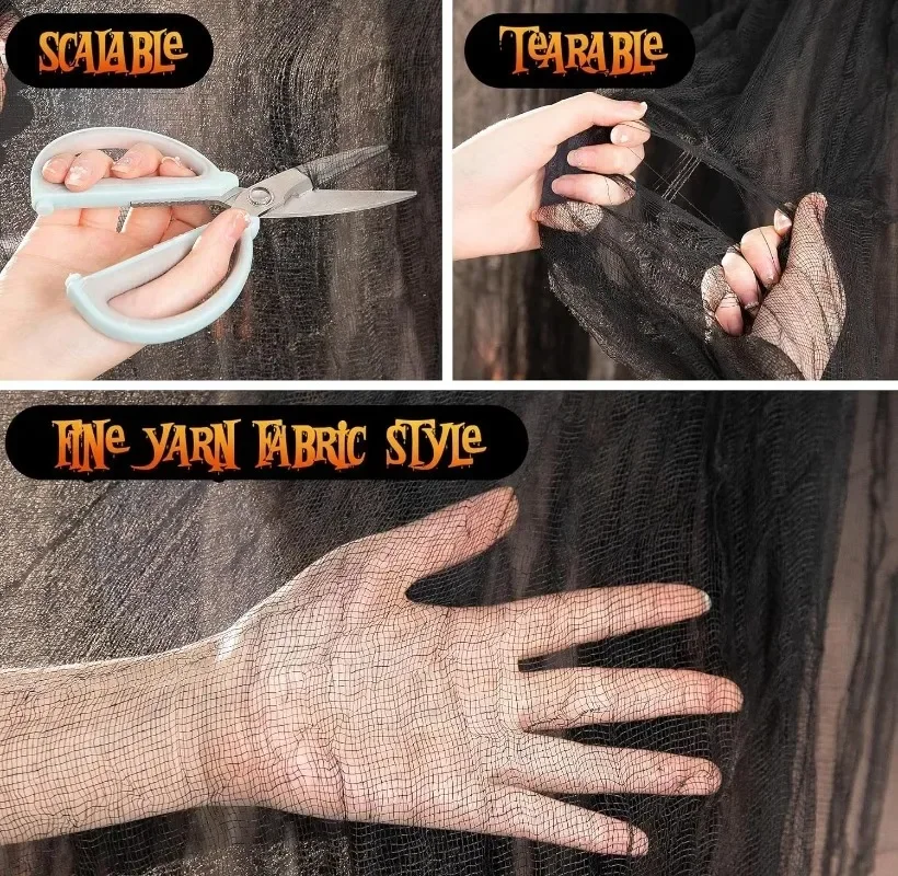Halloween Black Creepy Cloths 76x198cm Mesh Cheesecloths Halloween Party Gauze Netting Spider Web Wall Gauze Terror Scene Props