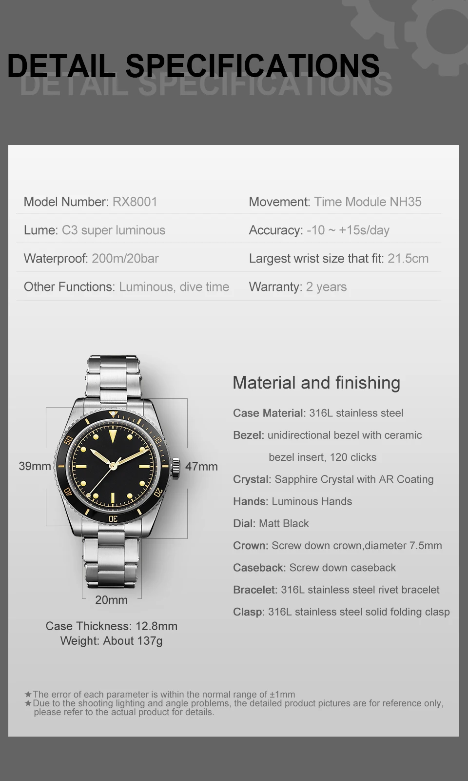 Hestur Automatic Mechanical Watch NH35 Vintage Sports Movement Watch For Men 20bar Waterproof Luminous Men's Diver Watch Luxury