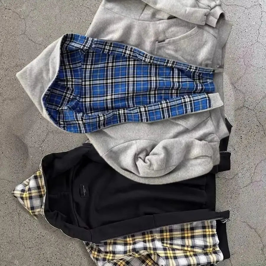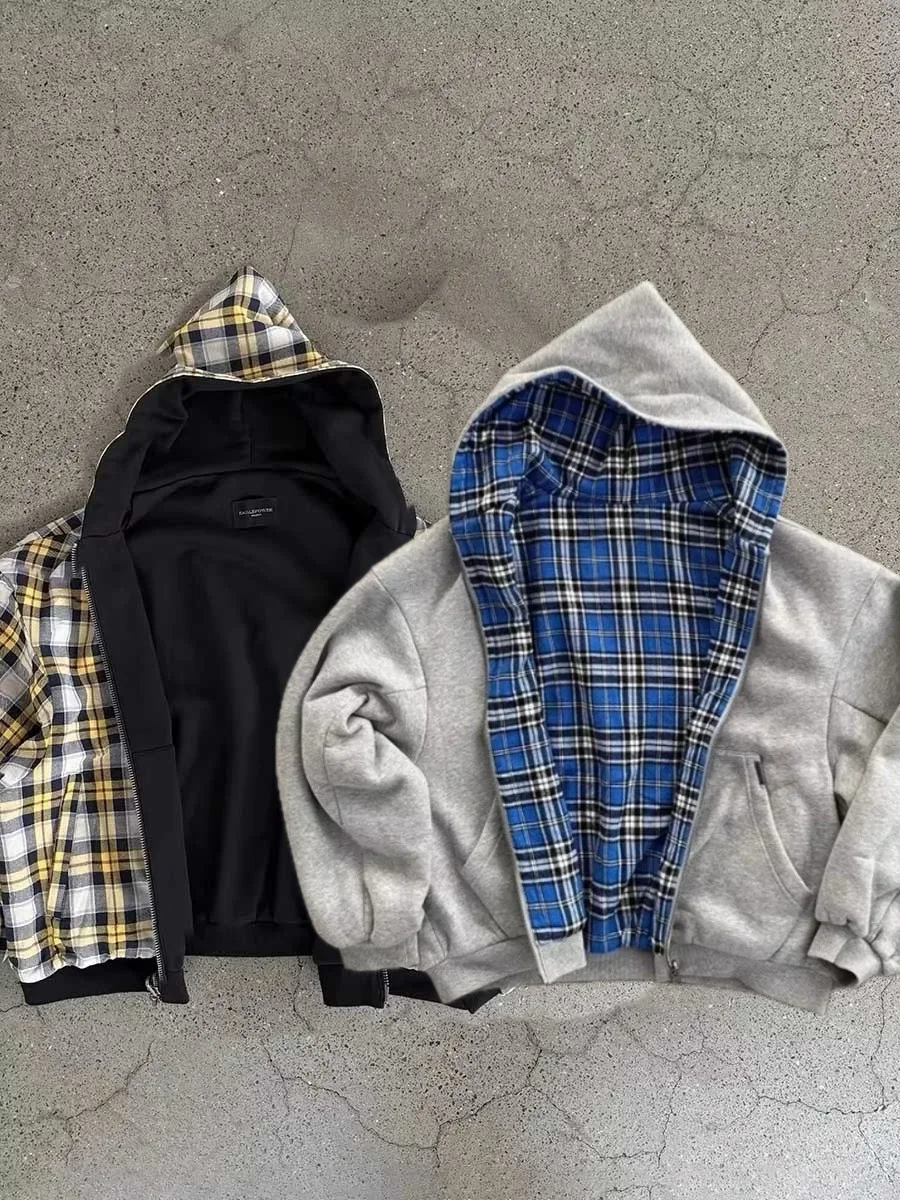 Korean Fashion Simple Gray Double Sided Oversized Zipper Hoodie Women Y2K New Harajuku Gothic Casual Joker Couple Sweatshirt