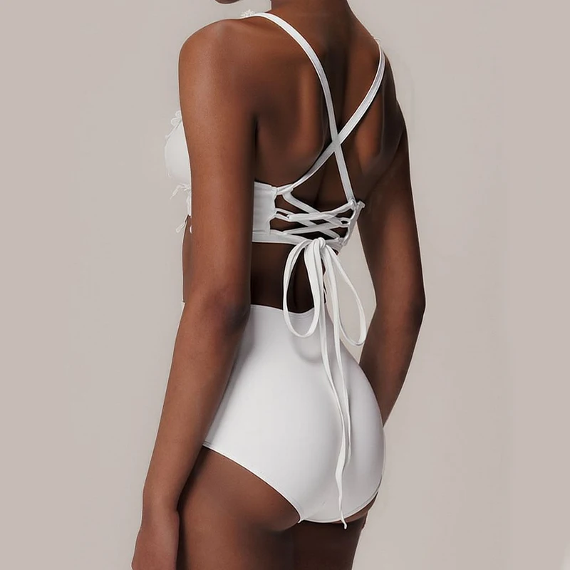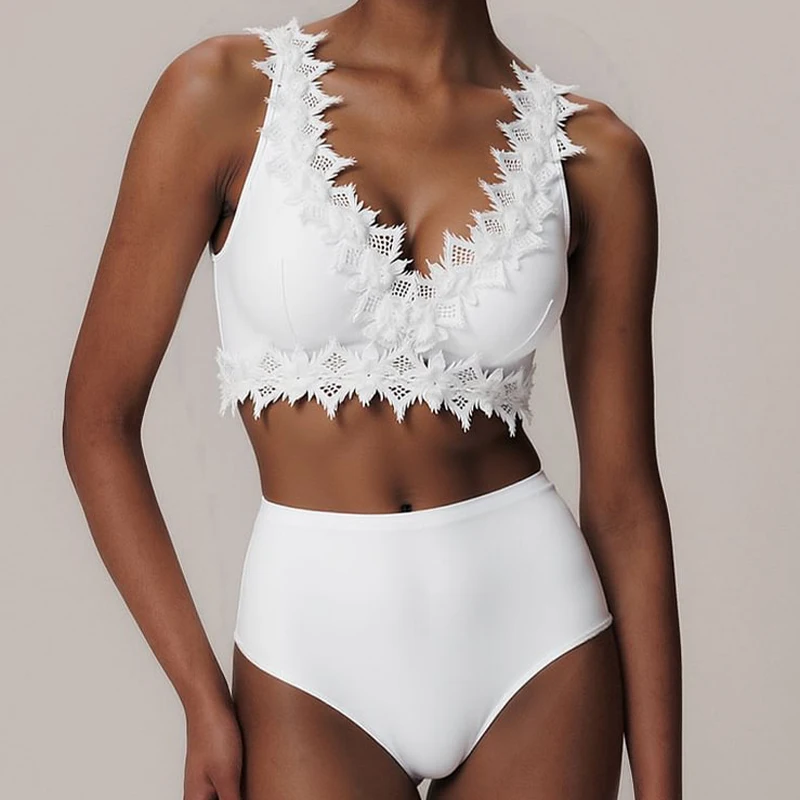Lace V Neck Women High Waisted Bikini Set Bikini Swimsuit Push Up Tank Top Separate Two-Piece Swimsuit Backless Swimwears