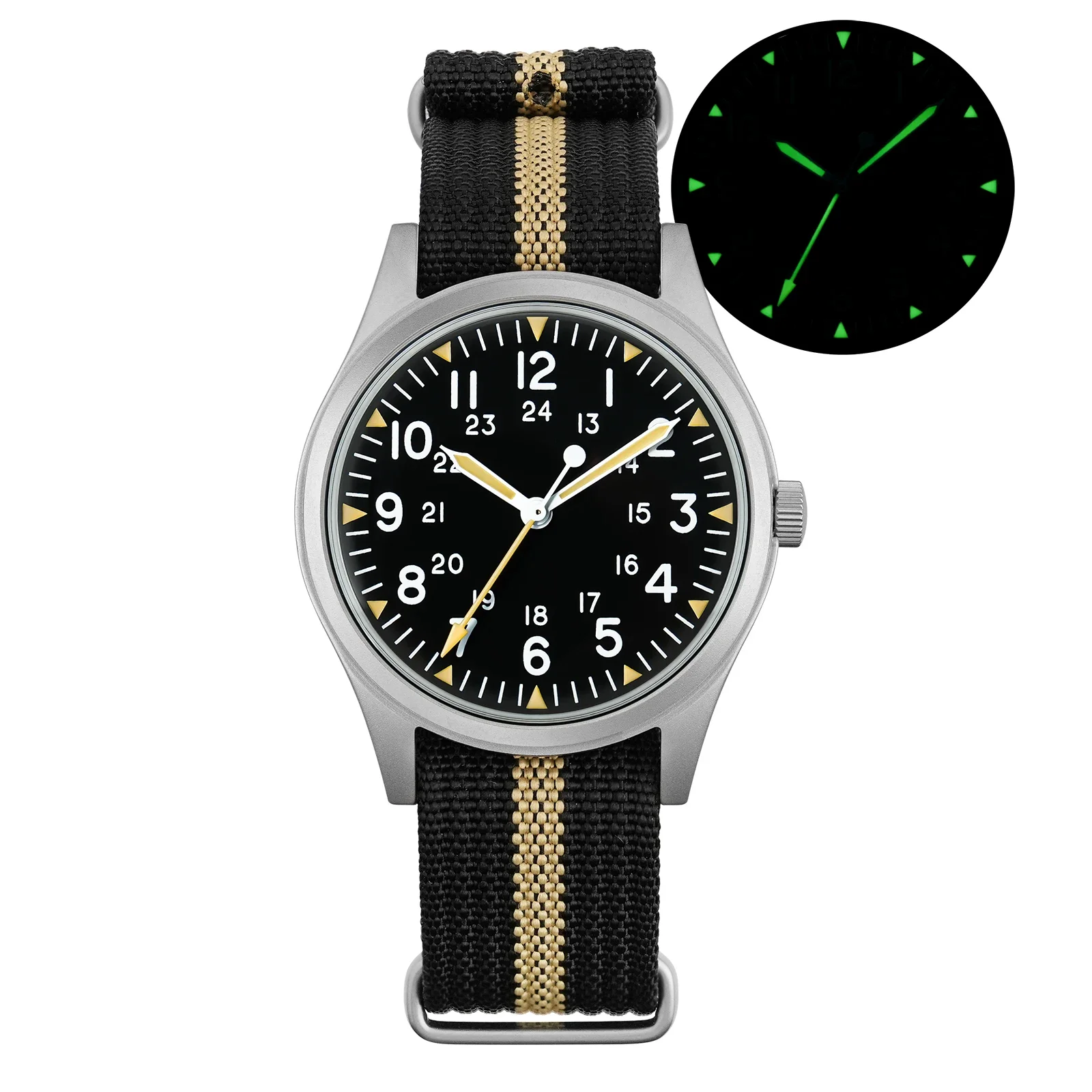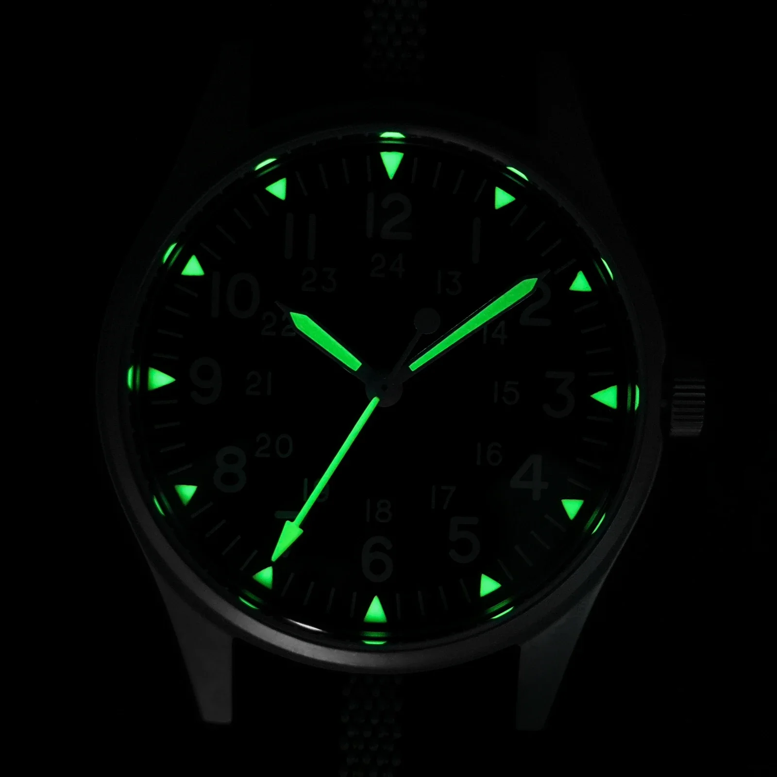 밀리타도 ML07 빈티지 시계 미요타 슈퍼 2035 무브먼트 돔형 사파이어 크리스탈 C3 야광 10Bar 방수 36mm 군용 시계