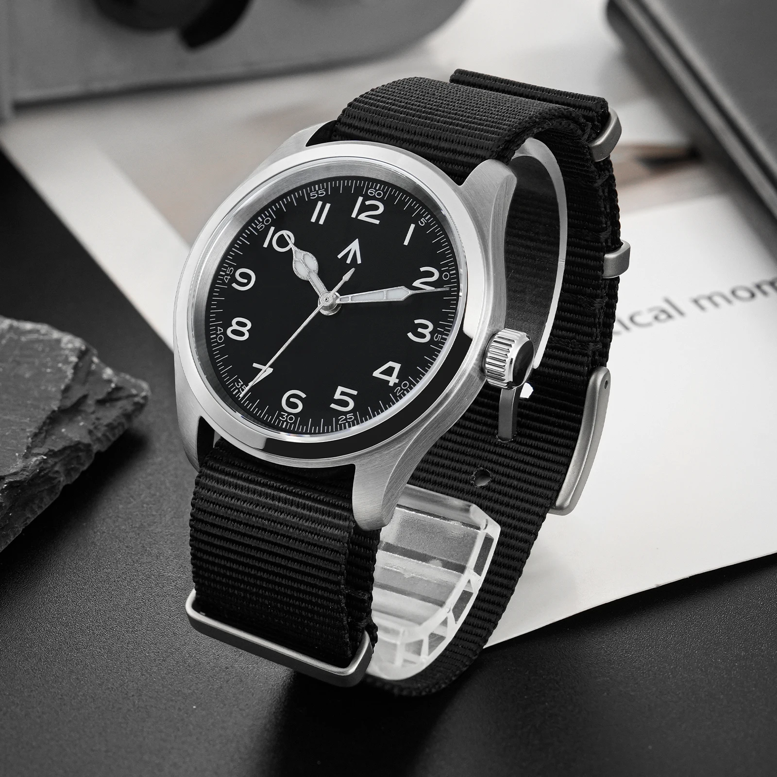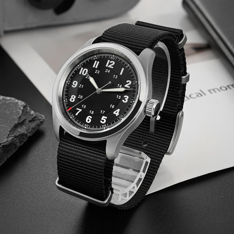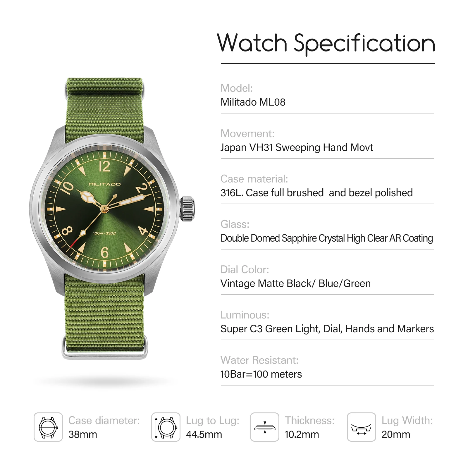 Militado ML08 Vintage Black Watch VH31 Sweep Quartz Wristwatch Ar Sapphire Crystal Luminous C3 BGW9 100 Waterproof Watches Man