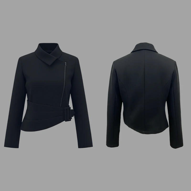 Woman Autumn Winter Formal Evening Asymmetric Jackets 2025 New Long Sleeves Black Zipper Stand Collar Urban Casual Women's Outerwear