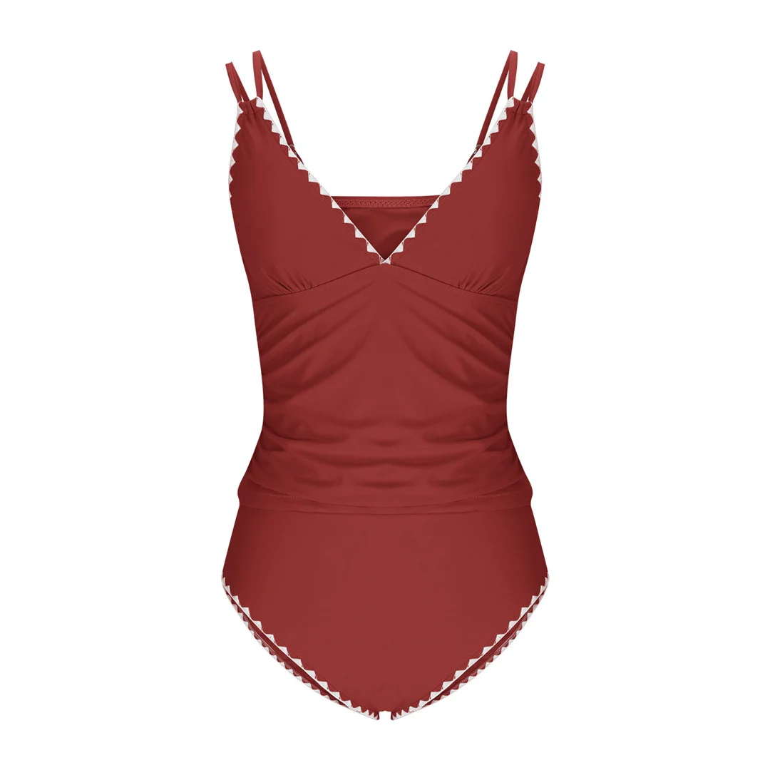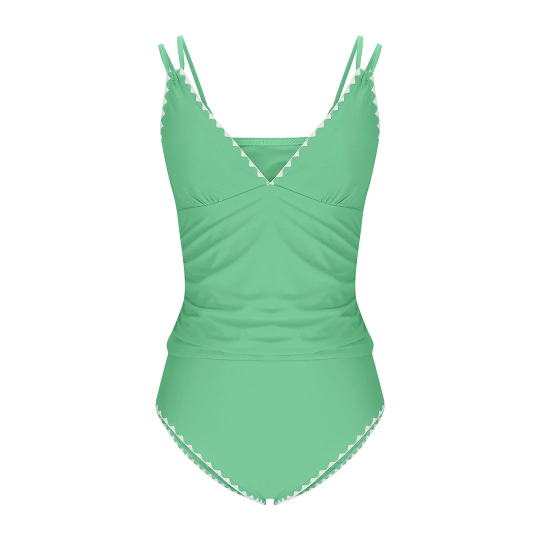 S - XXL New 10 Colors V Neck Tankini Bikini Women Swimwear Female Swimsuit Two-pieces Bikini set Bather Bathing Suit Swim K6770