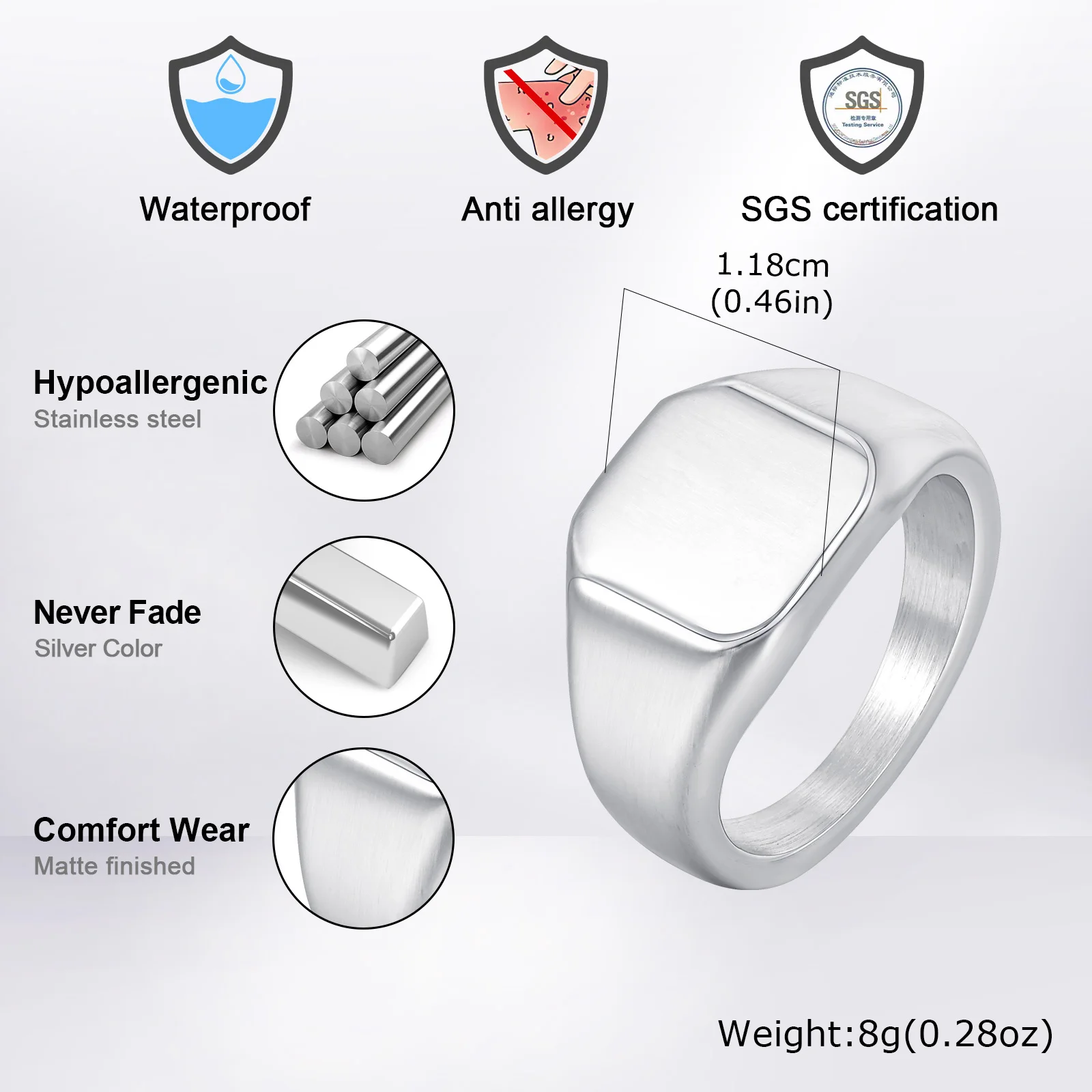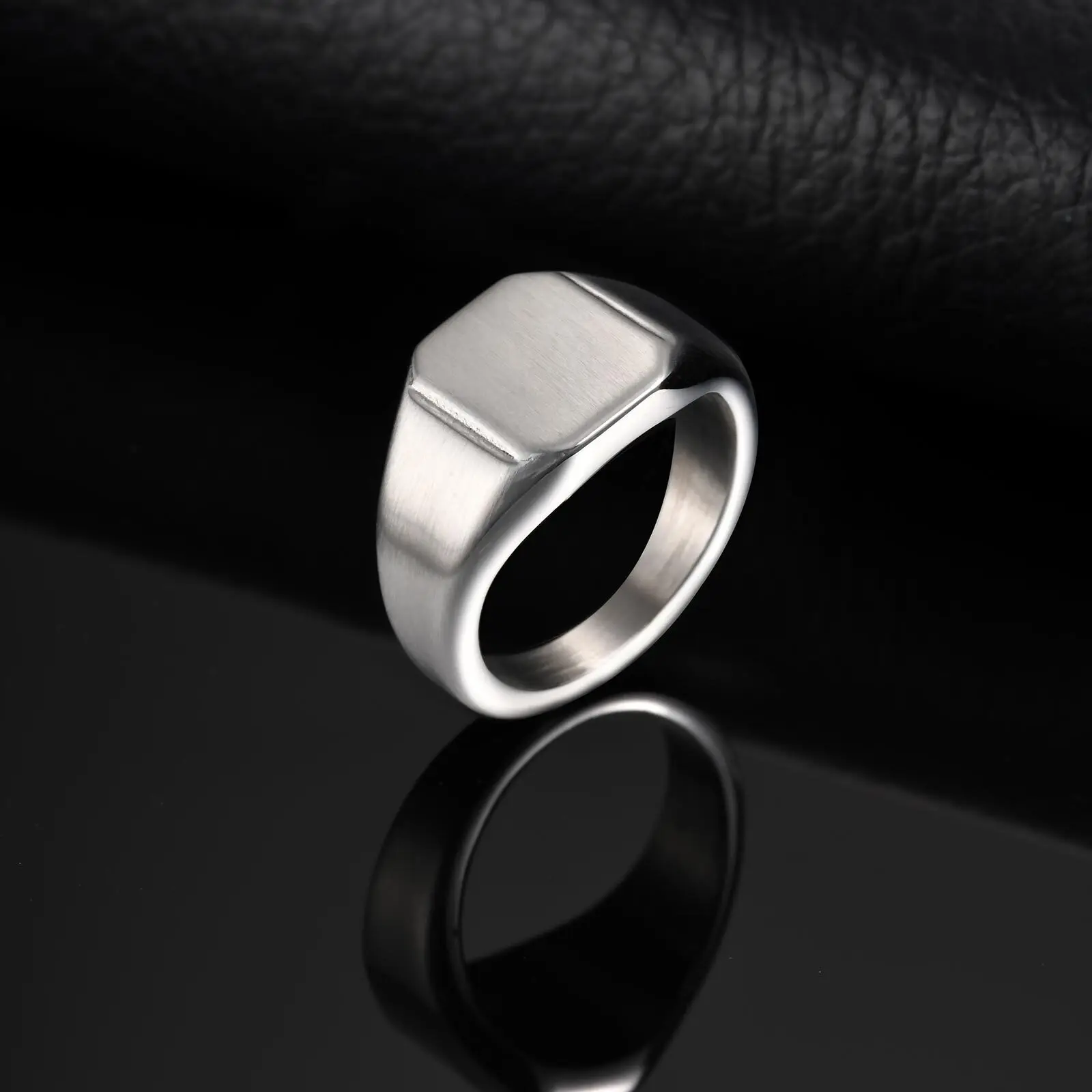 Silver Color Square Signet Ring for Men Women,Brushed Stainless Steel Ring Band Ring,Basic Chunky Ring Thumb Ring