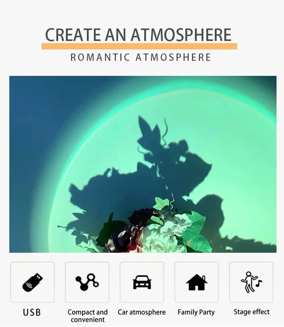 USB Sunset Light Projector Rainbow Neon NightLights 7 Colors LED