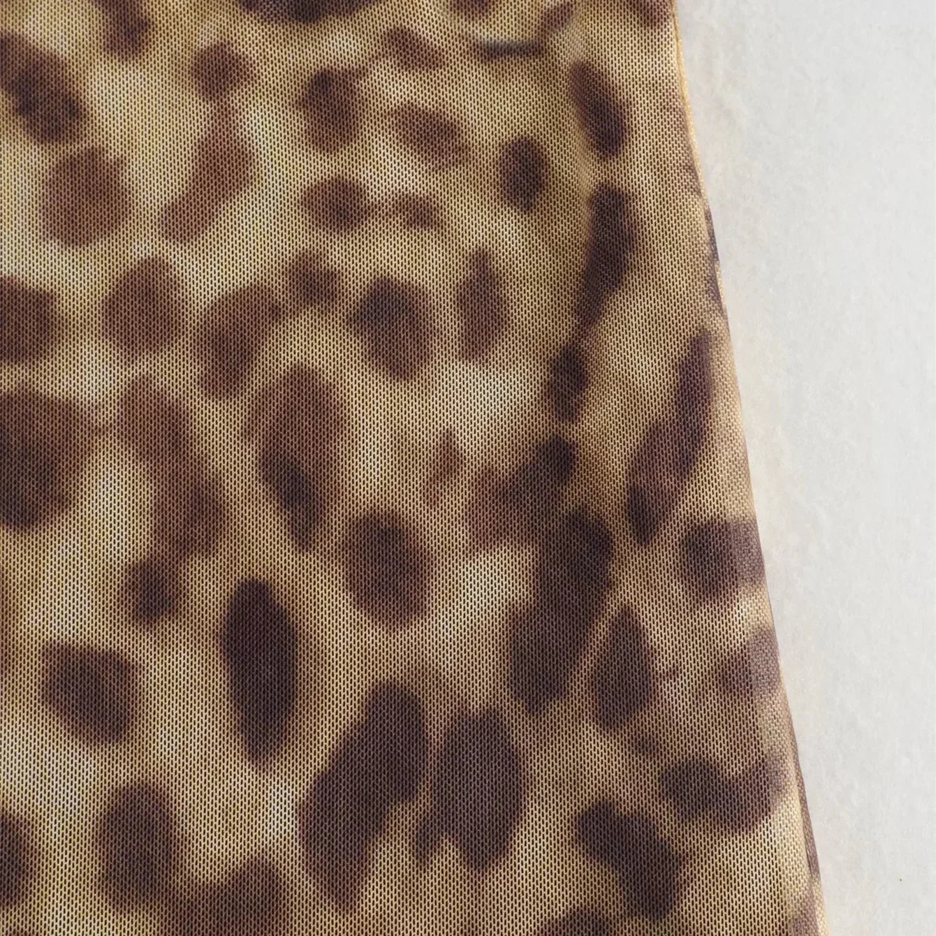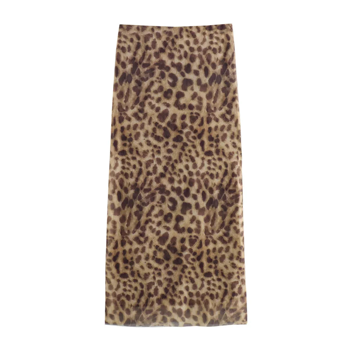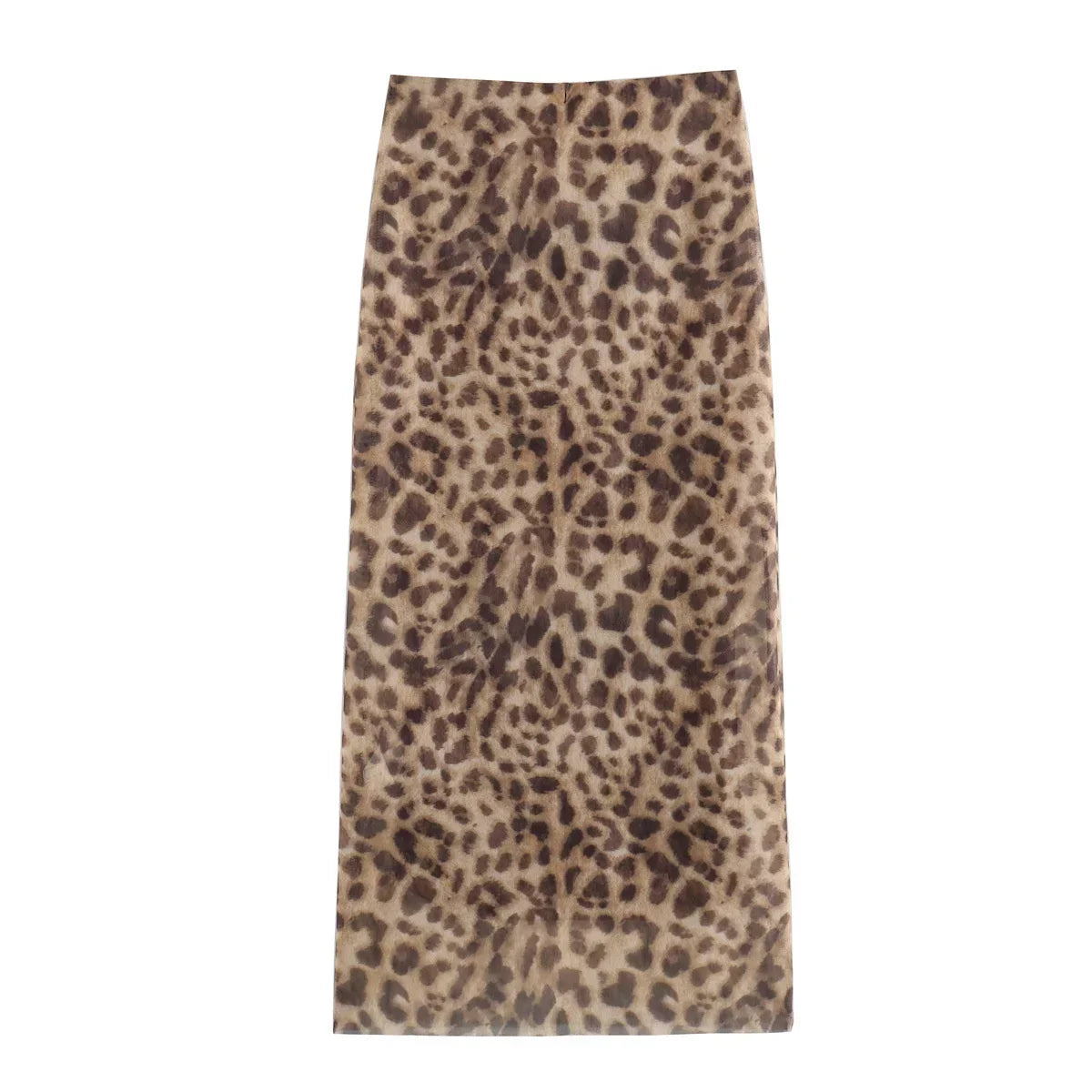 Women Leopard Tulle Midi Skirt 2024 Summer Fashion High Waist