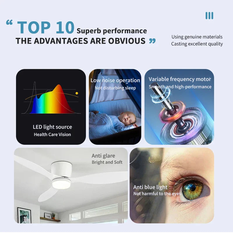 XINGOO Ceiling Fan White Low Floor Ultra Thin 17cm DC Ceiling Fan With