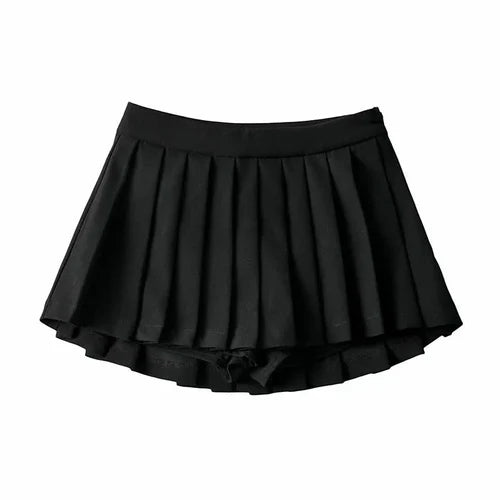 Zoki Sexy Women Pleated Skirts High Waist Summer Vintage Mini Skirts